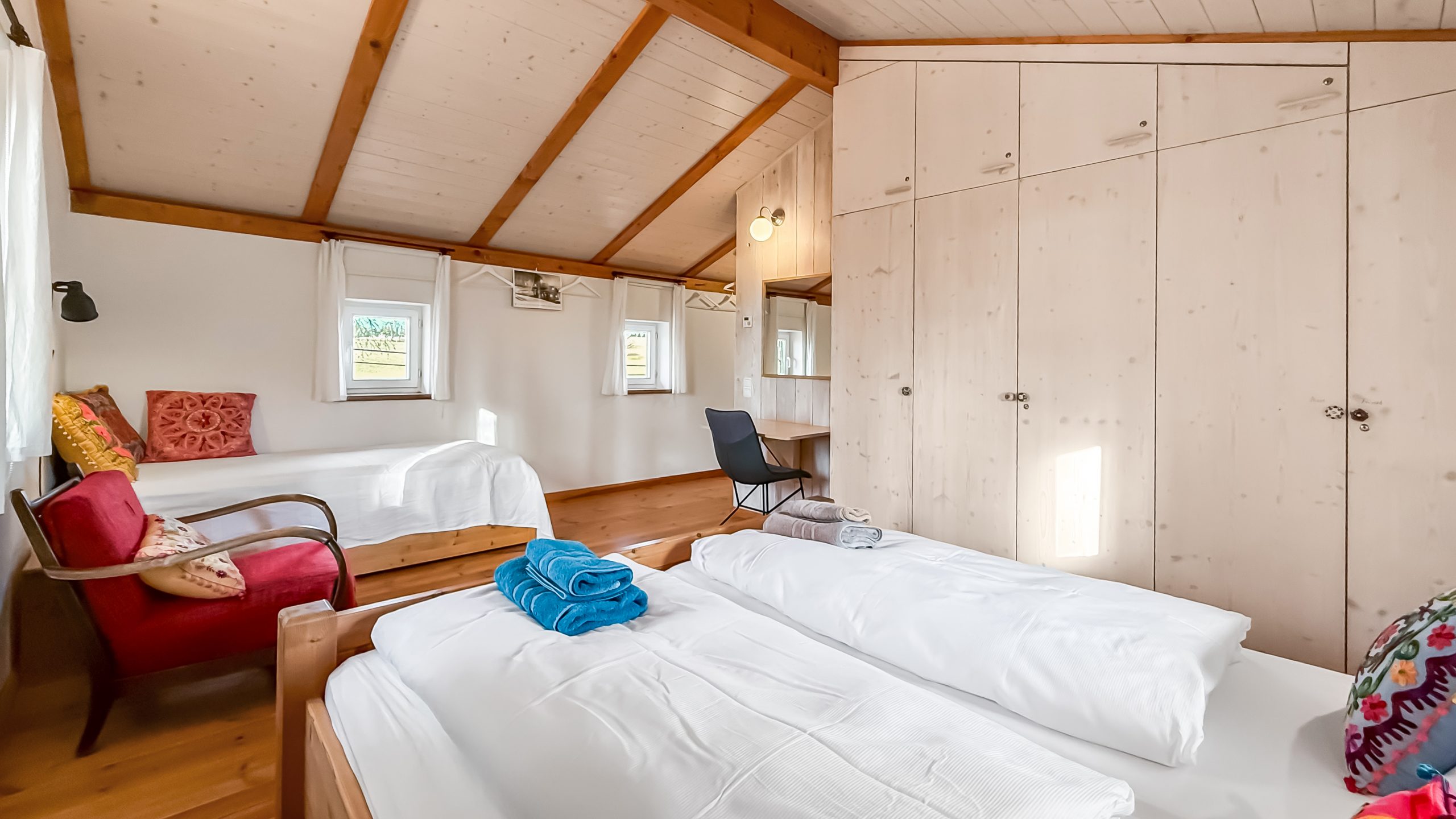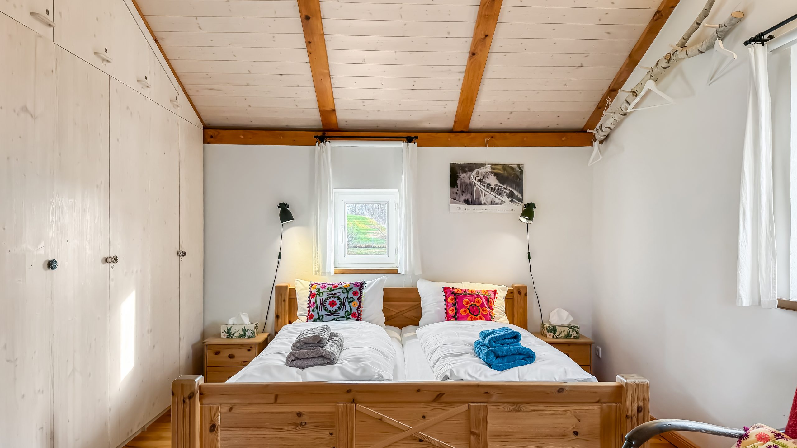 Schlichte Massivholz-Innenansicht im Bahnwärterhaus
