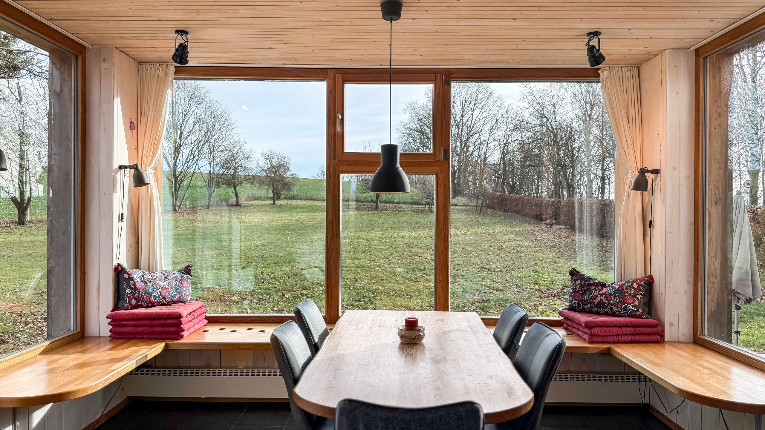 Die Architektur des Hauses greift das Zusammenspiel von Natur und Jahreszeiten auf. Holz, Licht und klare Linien schaffen eine Atmosphäre, in der Wärme und Geborgenheit spürbar werden. Wer hier wohnt, erlebt die Landschaft mit allen Sinnen.